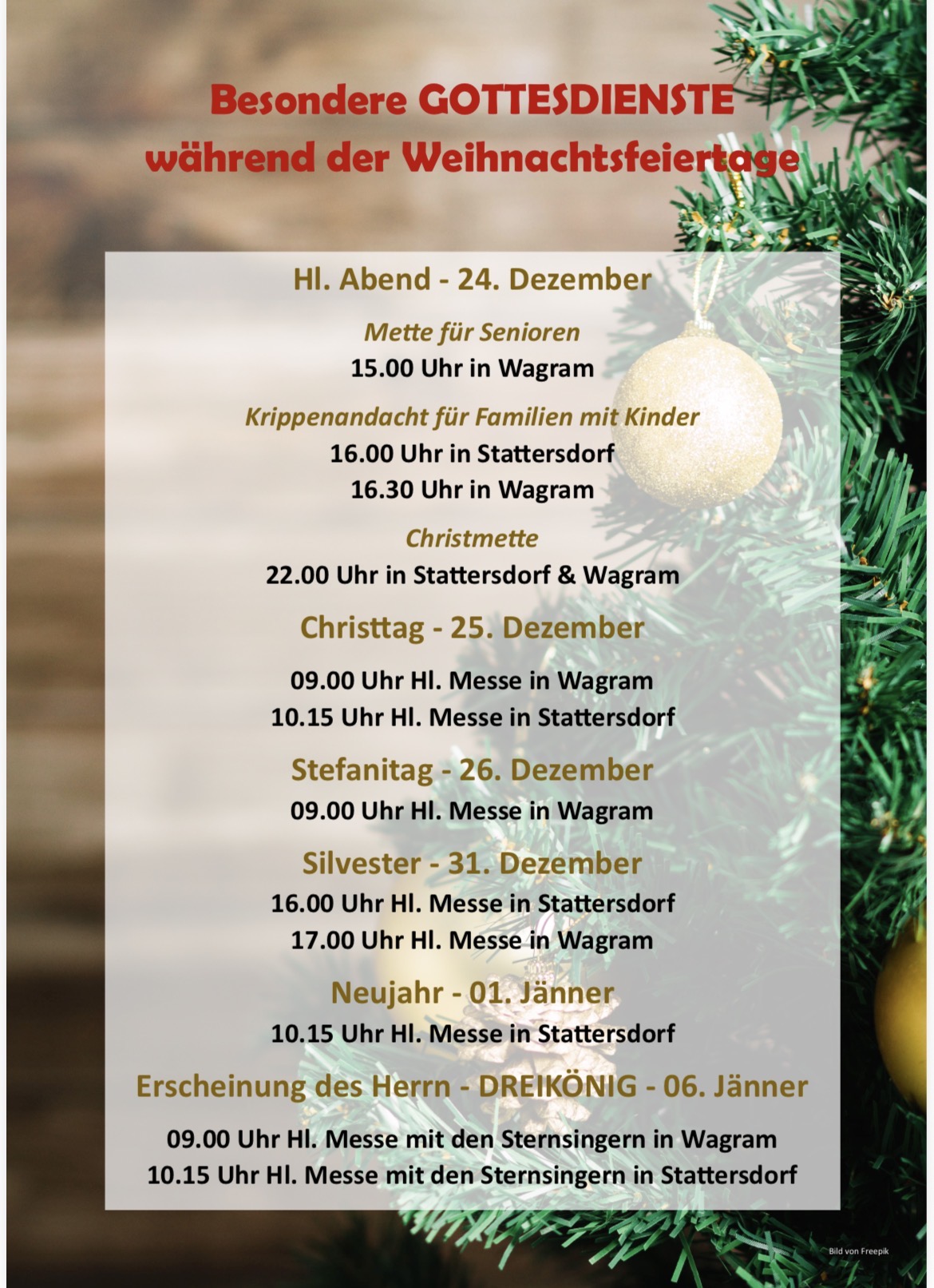 Gottesdienste während Weihnachtsfeiertage